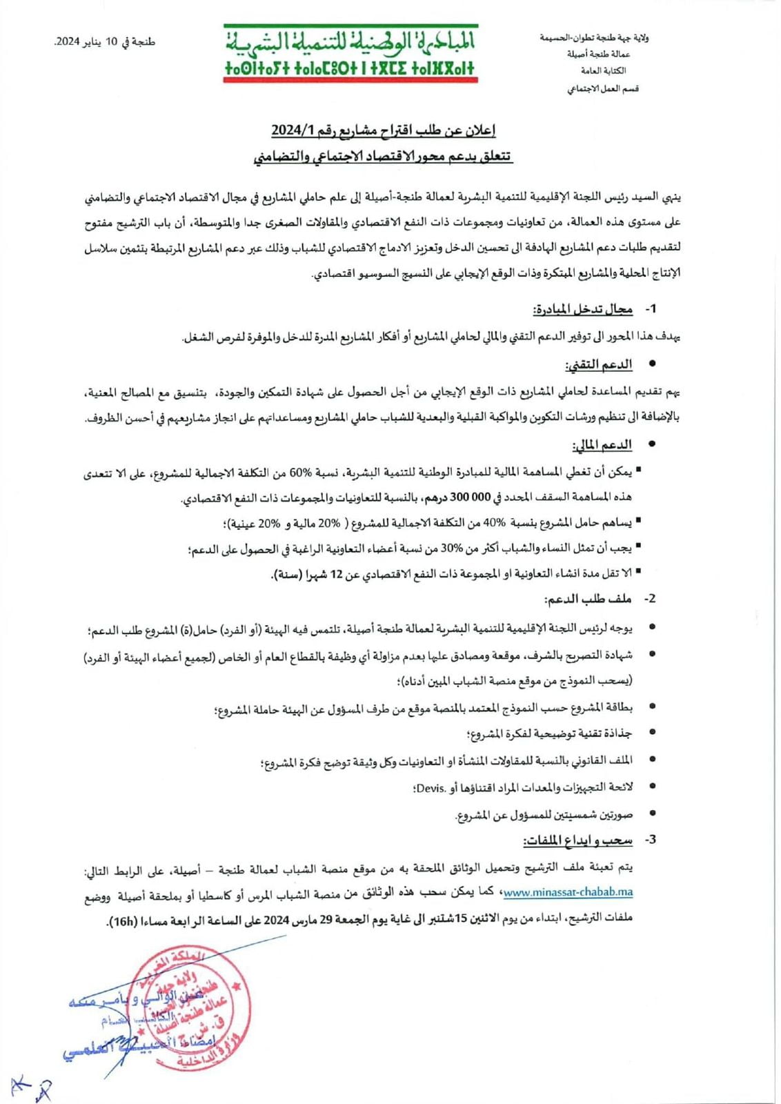 اعلان طلب المشاريع رقم 1 برسم سنة 2024