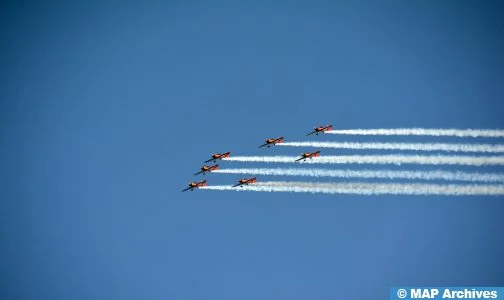 وأبان ربابنة الطائرات السبعة، المشكلة لفرقة “المسيرة الخضراء”، عن انسجام وتحكم تام في طائراتهم عبر رسم لوحات بديعة في السماء والقيام بمناورات وحركات استعراضية صعبة ومعقدة ومناورات خطفت أنفاس المشاهدين.