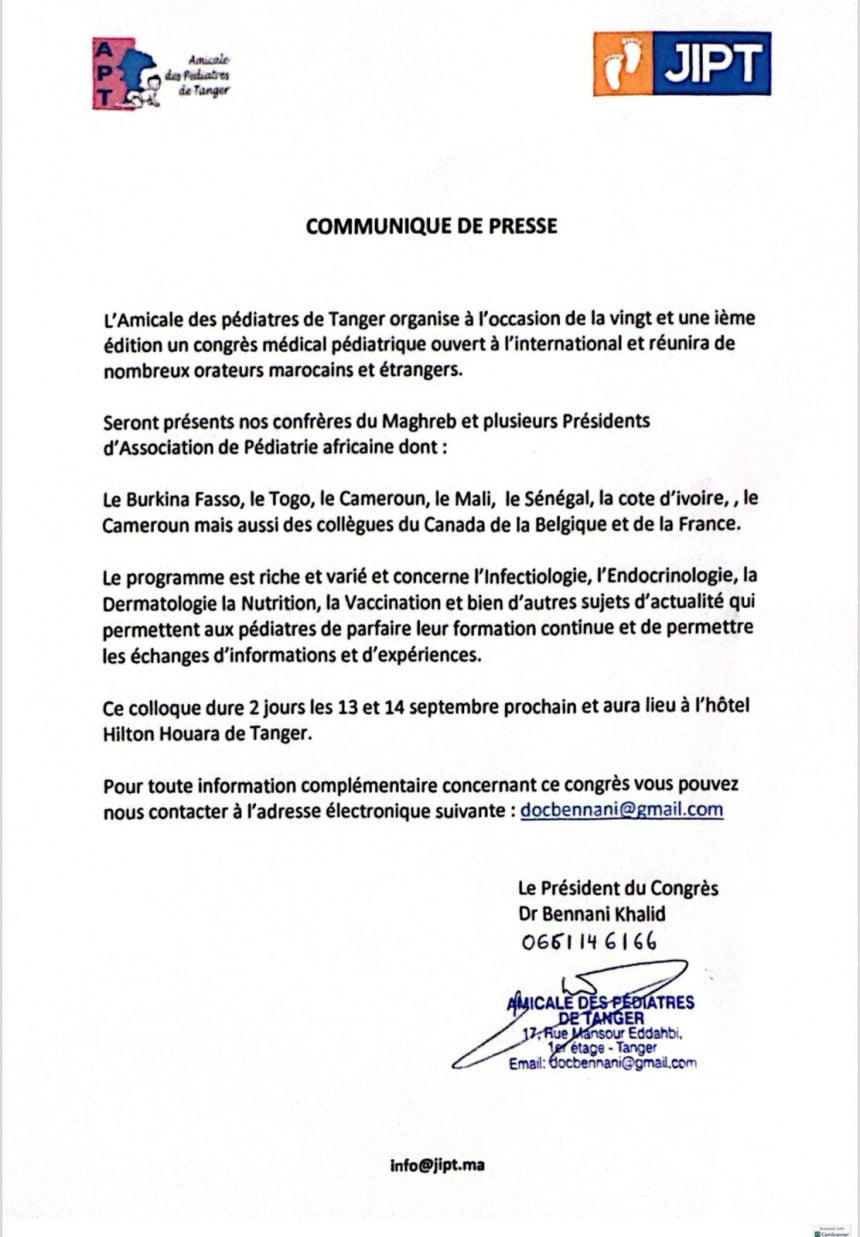 تستضيف مدينة طنجة فعاليات الدورة الحادية والعشرين للمؤتمر الدولي لطب الأطفال يومي 13 و 14 شتنبر في فندق هيلتون الهوارة.