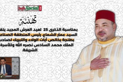 بمناسبة الذكرى الخامسة والعشرين لعيد العرش المجيد، يتقدم السيد عمار الشماع، رئيس…