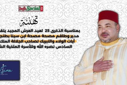 بمناسبة الذكرى الخامسة والعشرين لعيد العرش المجيد، يتقدم مدير وطاقم مصحة مصحة…